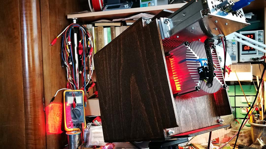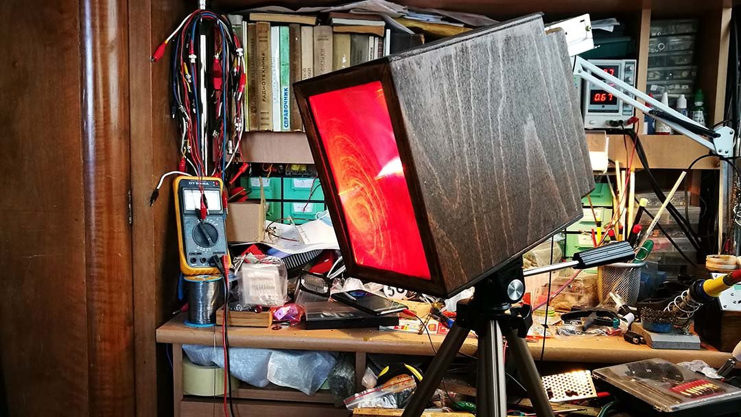 Събрана е кутията на огледално-рефлексния механизъм и рамката на обектива. Модулатора работи нормално. Емитера е INTELLIGENT LED SOLUTIONS - ILH-OW01-HYRE-SC211-WIR200, Red, 656 nm (Hyper Red) - малко по-дълговълново червено от предишния експеримент. Проектната максимална мощност е 1,47W / 700мА.