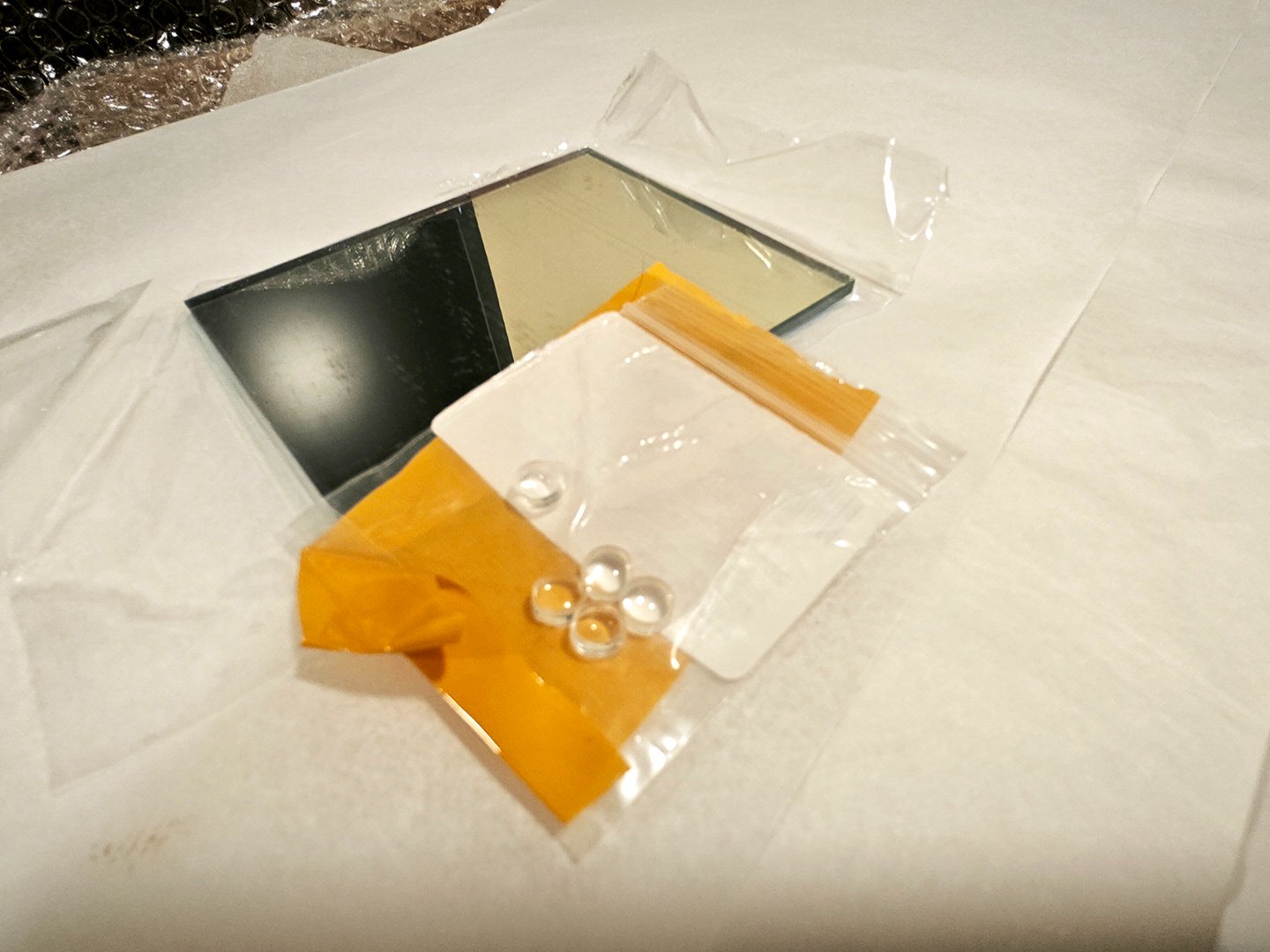 Пристигна лупата на лупите, огледалото и малките лещи за приемника. Френеловата леща е с размери 300х400мм, дебелина 2мм, фокус 500мм, Полиметилметакрилат(PMMA). Огледалото е от оптично стъкло и коеф. на отражение над 97%. Работата е сериозна :)