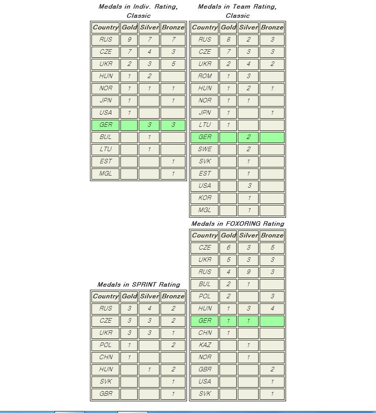 В класирането по медали в класическите ARDF дисциплини страната ни въобще не фигурира. Тъжен факт!
