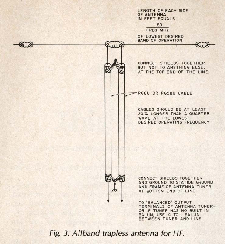 Използвал ли е някой такъв тип симетричен фидер? Намерих една статия в 73 Magazine (February 1984), описваща многобандова антена, захранена по този начин. Интересува ме има ли някой впечатления от работата на такава антена?