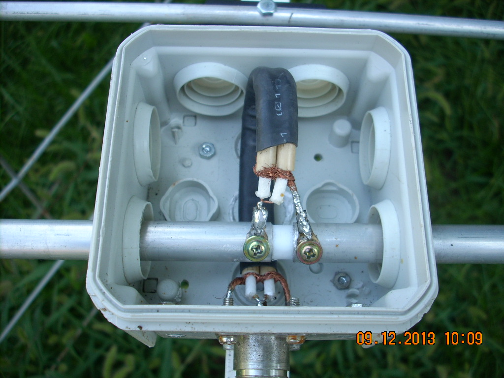 Открих една от белите, конструктивна, май ттрансформираща линия не е трябвало да минава върху рефлектора, сложих разклонителна кутия за вибратора и 75-омовите отрязъци и спечелих 0.1 от КСВ-то, пак си е нещо.