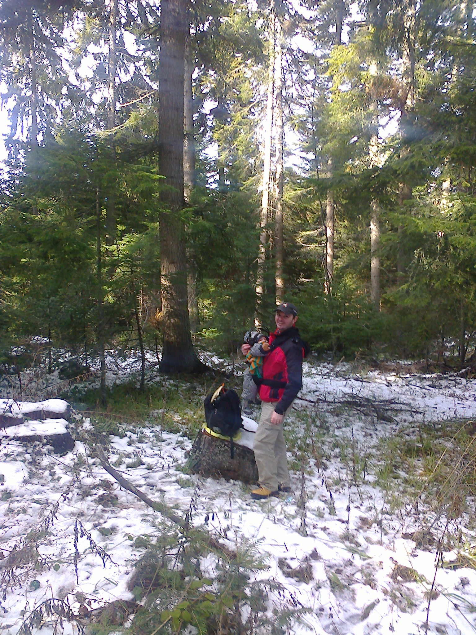 между боровете няма шум и няма следа от какъвто и да е вид човешка дейност, даже птички се чуваха което още повече ме зарадва, дивата природа в чист вид. По S-метъра нямаше нищо, зачудих се дали няма нещо разкачено, след една бърза проверка установявам че всичко си е на място, просто аз не съм свикнал чак толкова един пиксел да не свети на приемане. Вечерта преди това заредих батериите на радиото, подготвих обтяжки, 2 вида антени (разбирайте жични) и поради редуциране на багажа не носех 12м мачта, която обикновено е с мен, първия пън от отрязано дърво го набедих за "маса" или нещо подобно. Между клоните опънах Wireman JPole на DK7ZB за 20м много станции имаше, направих РА, РС с 5Вата QRP оценка 599, нямах време за повече, малкия лъв искаше нещо (той е в кенгуруто на гърдите ми и се радва с усмивка на мелодията на телеграфа), трябваше да му обърна внимание и да сгъвам и радиото и жиците, та така набързо приключи неделното излизане и макар и за малко успях да зарадвам себе си, децата и цялото семейство в природата. Разбира се това не беше всичко но беше част от почивката, която да споделя :D