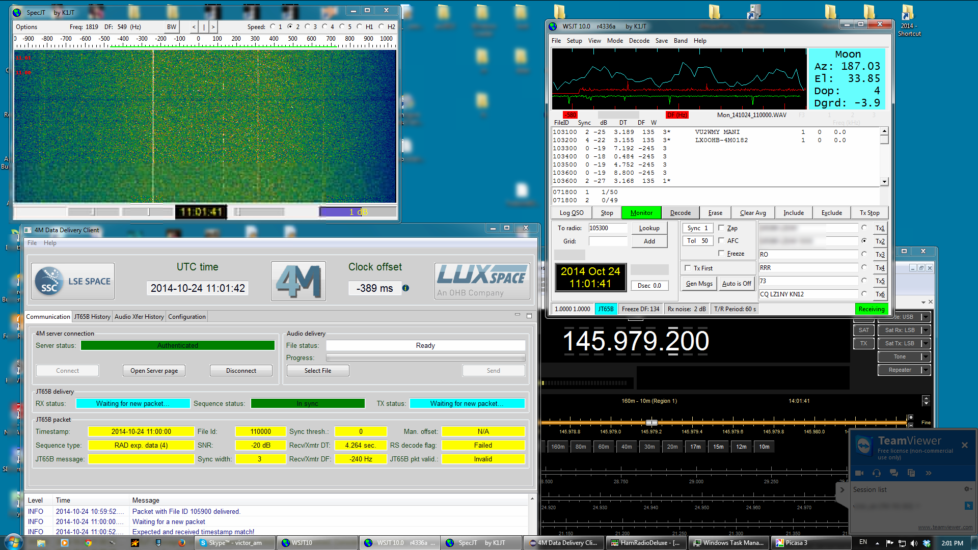 Здравейте ! Днес 26.10 след бурята отново приемам сигнала от 4M на разстояние 330218.6392.