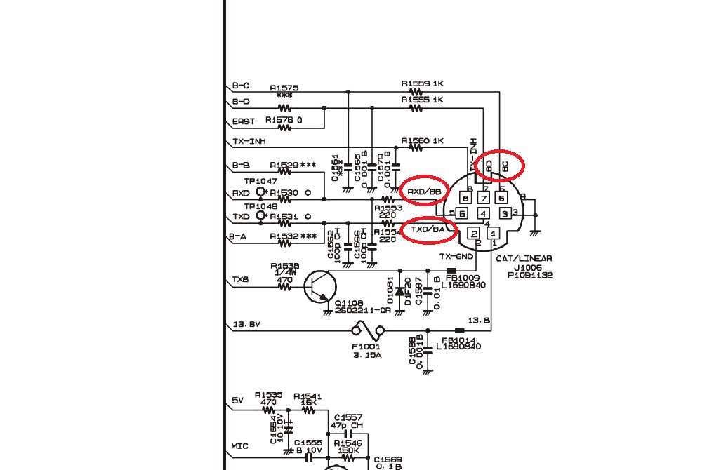 съветвам Ви първо да проверите дали изобщо излиза нещо на CAT-пиновете на конектор J1006 и ако да - какво е то, за да се уверим първо в какъв режим е Q1049. за целта е най-добре (безопасно) да се използва съответния мъжки MINI DIN 8 накрайник със запоени на него кабели към пинове: