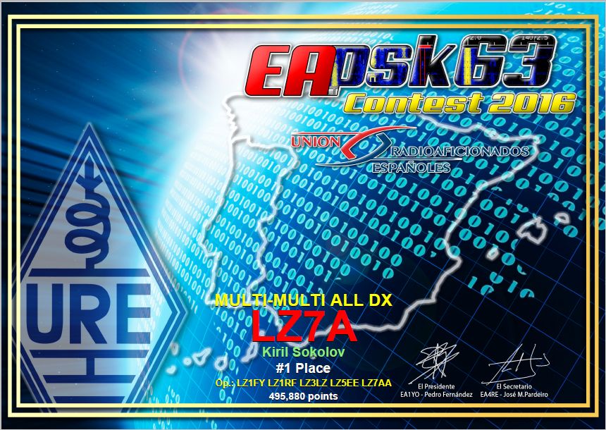 LZ7A завоюва І-во място в ЕA PSK63 2016