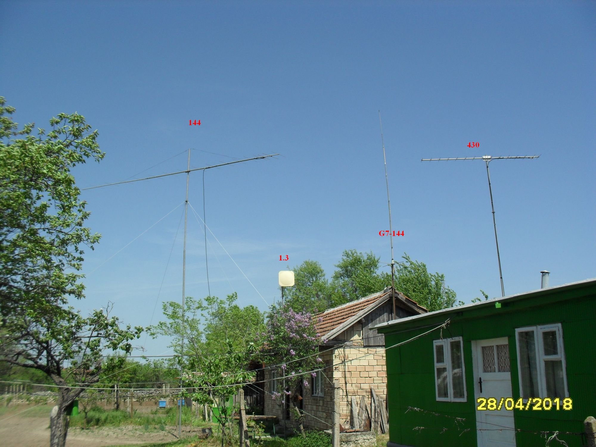 Разполагам на покрива за 50 mHz с 3 елемента Яги L=1.90m (28 Om) DK7ZB изработена в домашни условия. Нямам ротатор и антената е насочена на 300 градуса (G,F).
