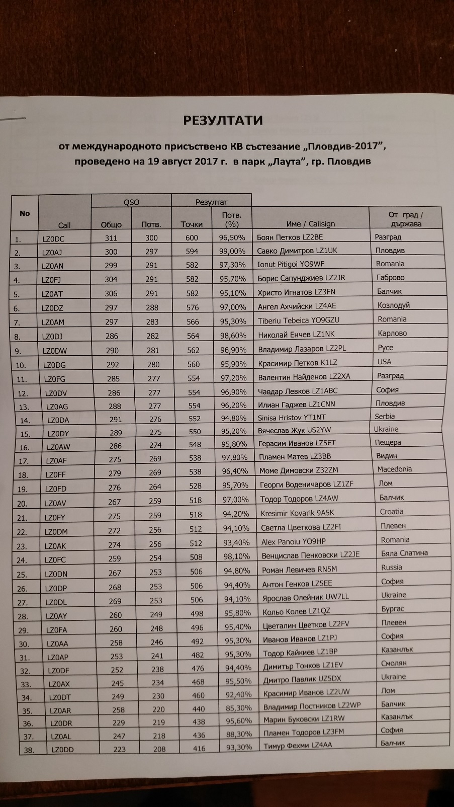 LZ HF FIELD DAY "ПЛОВДИВ" - 2017г.
