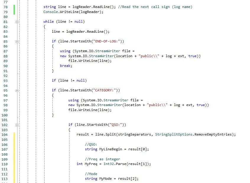 По подтемата "Заличаване на лични данни" съм катеторичен - подхода на Любо (програма .exe файл) има необоримо предимство. Някои логове (например UR5EQF log v.3.31-60) пишат мейли, адреси и имена като част от връзката, на същия ред в отчета. Само части от един QSO ред не могат да се махат по мързелив начин. Там заминава целия ред. За фини изтривания си трябва програма.