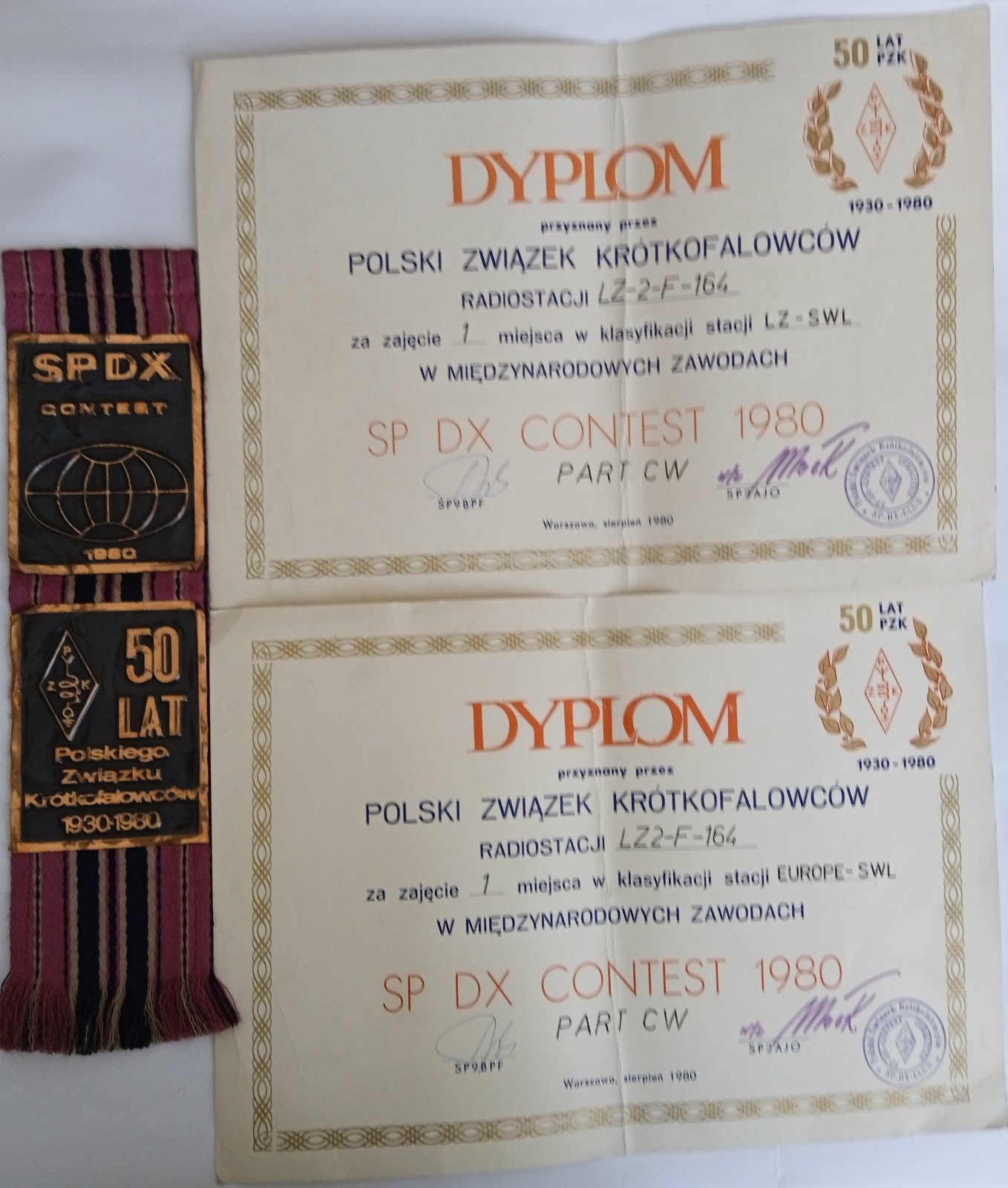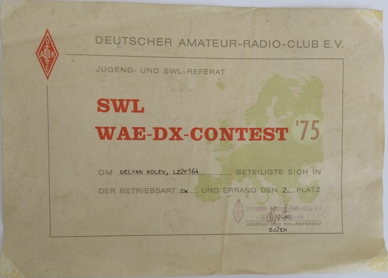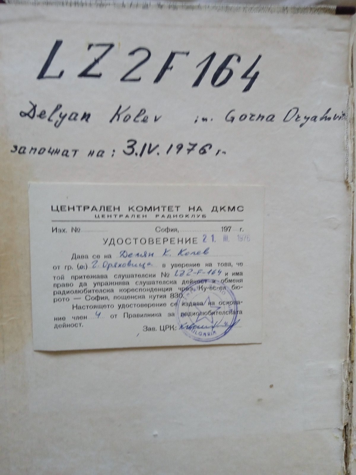 дойде време да чистя тавана и да преоткривам "съкровища" от едно време. Бях обещал на LZ2DB да намеря тези материали и да ги сканирам за публикуване в неговия сайт, но така и не ме дочака, лека му пръст. Слушателската дейност я започнахме със Стефан LZ2PS, LZ2F166. Изглежда са ни дали слушателски номера едновременно тъй като са близки с моя LZ2F164. Картичките тогава го "рисувах" на ръка и имам доста получени картички, като ги подредя, може да снимам някоя, да си припомним известните станции от онова време. Участвах и в състезания със слушателския номер, предимно на тези на които не участвах от някоя клубна станция LZ2KGO, LZ2KLC, LZ2KAF, и много други... Ето разрешителното, дневника и някои трофеи: