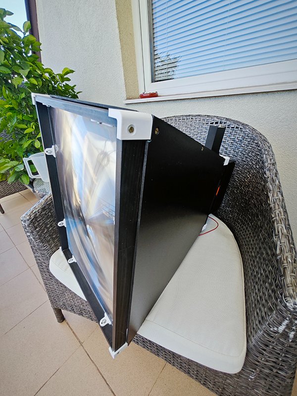 Пристигна лупата на лупите, огледалото и малките лещи за приемника. Френеловата леща е с размери 300х400мм, дебелина 2мм, фокус 500мм, Полиметилметакрилат(PMMA). Огледалото е от оптично стъкло и коеф. на отражение над 97%. Работата е сериозна :)