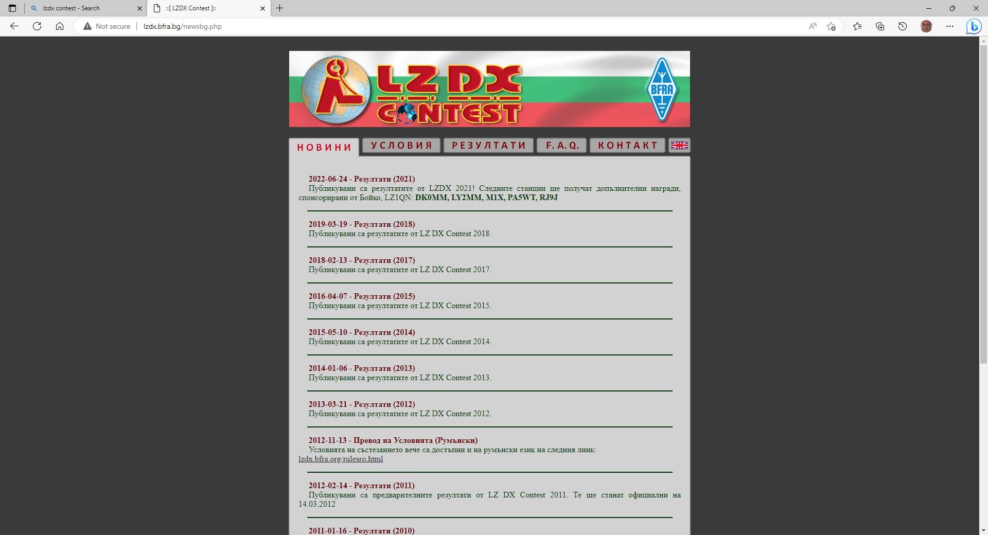Днес е 23. 05. 2023г. За поредна година Българските и международните участници са разочаровани от безхаберието на Управителния Съвет на БФРЛ в частност от КВ Мениджъра и Глаааавния съдия на LZ DX CONTEST. Да си пожелаем здраве и късмет може пък по КОЛЕДА да се случи ЧУДО...