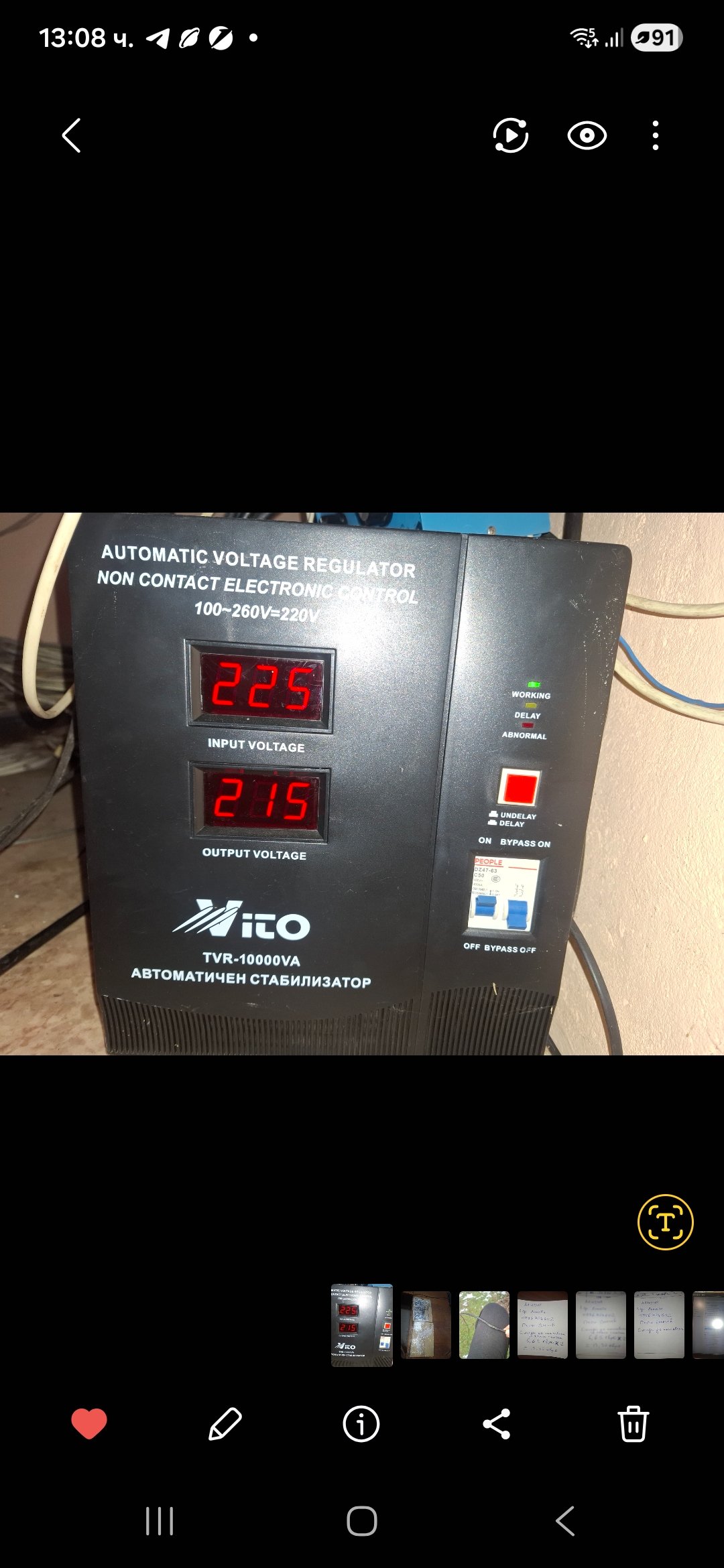 Използвам електронен стабилизатор на напрежение 10 000KVA , не със сервомотор и релета! Купих го за около 300лв. наскоро ги гледах за около 400лв.