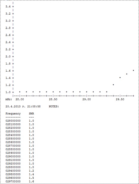 "Хексата" е известна и с това, че КСВ-тата на всички обхвати са доста приемливи.Антената на практика е широколентова.