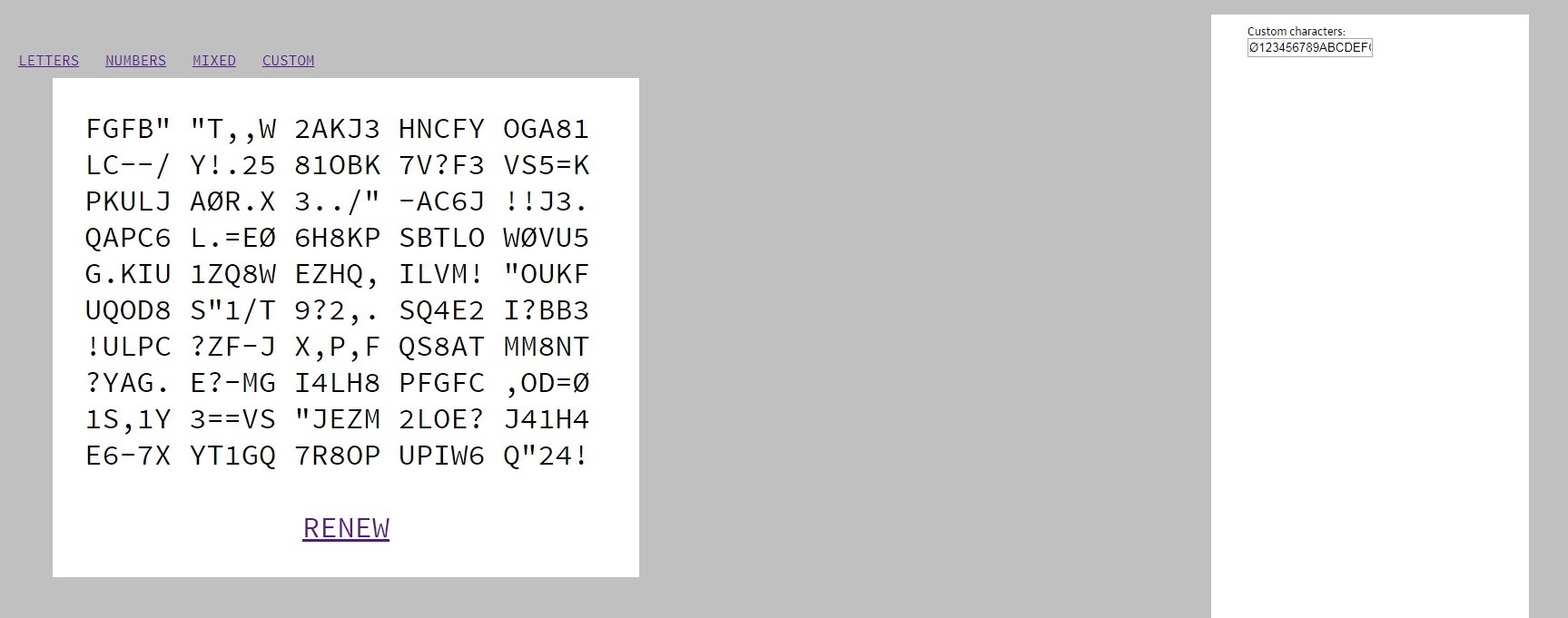затова мисля, че Митаци е дал и четвърта опция "CUSTOM", в която всеки може да избере кои символи да бъдат генерирани ... случайни комбинации само с тях.